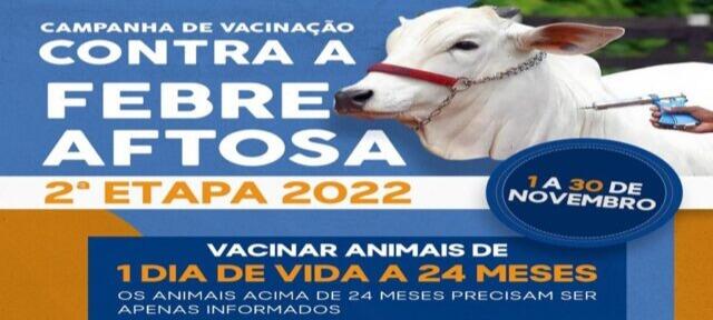 Atenção pecuarista! Começou na última terça-feira, 1º de novembro, a 2ª etapa da campanha nacional de vacinação contra a febre aftosa de 2022. A campanha segue até o dia 30 de novembro.