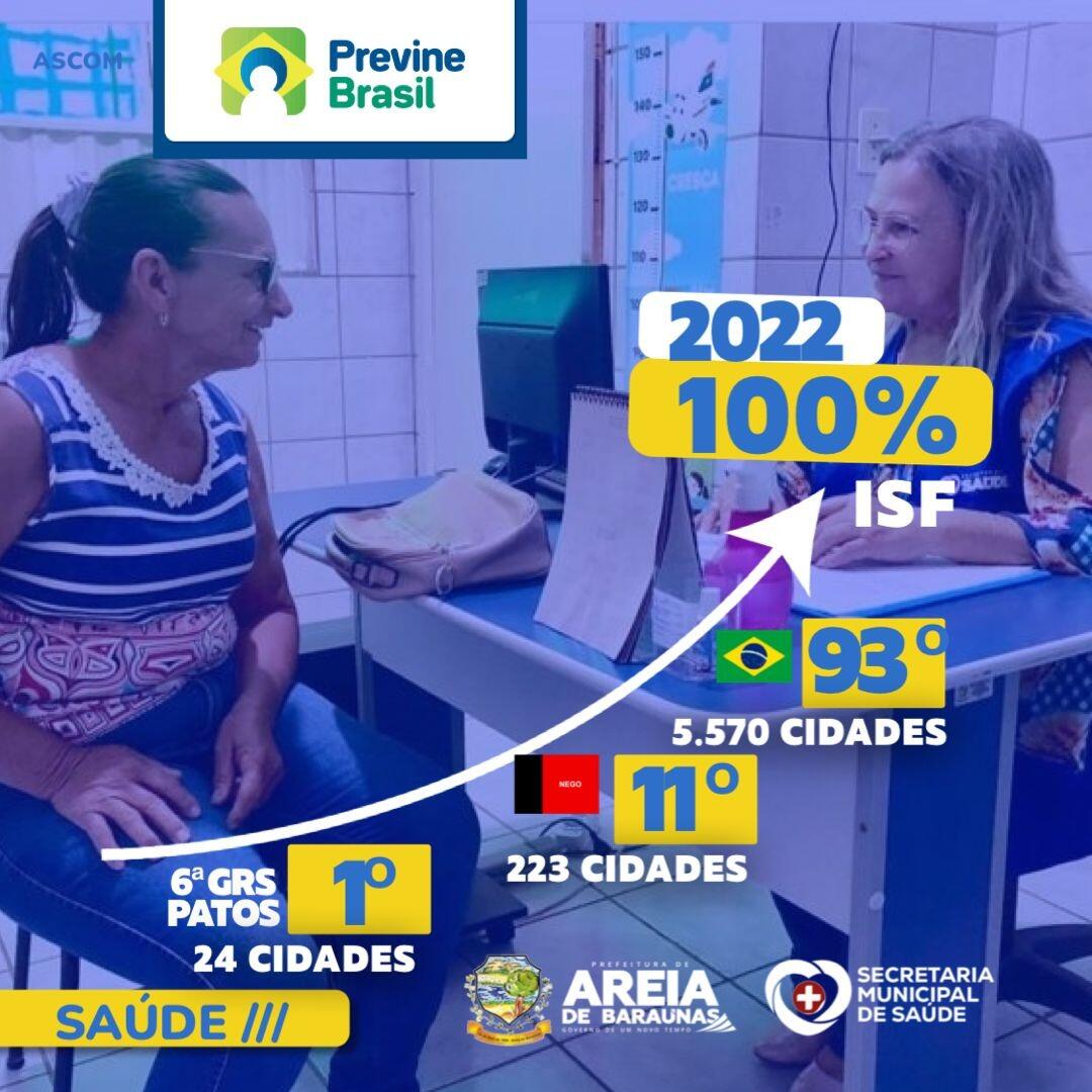 Areia de Baraúnas ocupa 1ª colocação do Previne Brasil entre os municípios da 6ª Gerência Regional