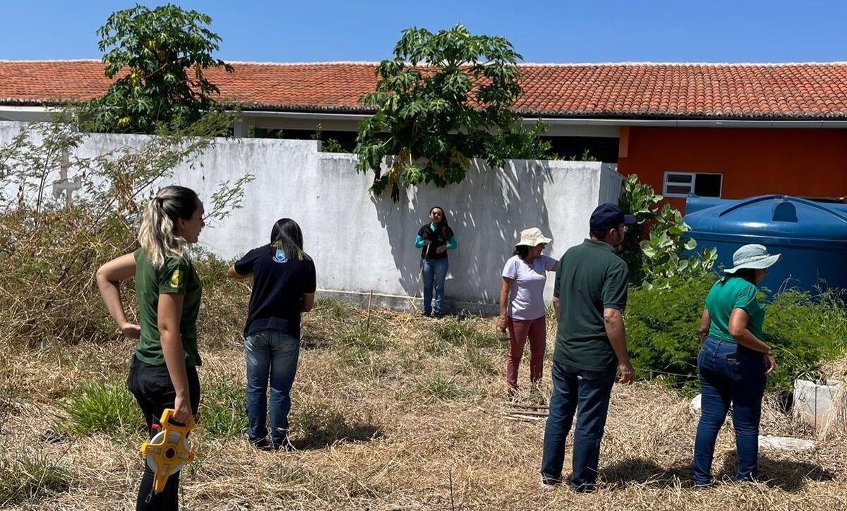 Desta feita, ocorreu a visita da professora Maria do Carmo, do curso de Engenharia Ambiental da UFCG, juntamente com os estudantes desta universidade, com a finalidade de realizar a piquetagem do entorno escolar a fim de realizar o plantio posterior.