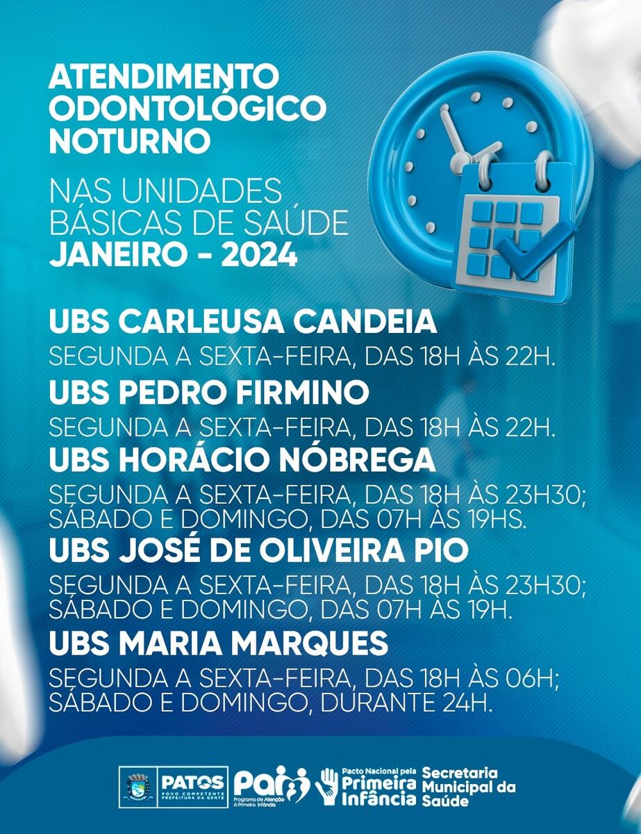 Saúde Municipal de Patos divulga cronograma especial de atendimento odontológico para Janeiro