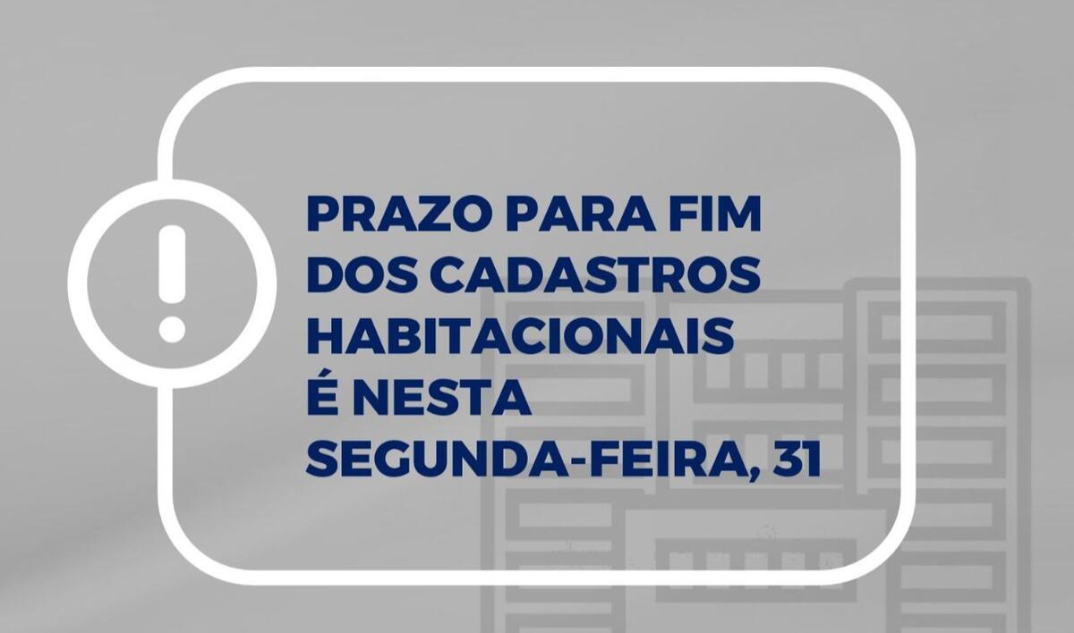 A Prefeitura de Patos por meio da Secretaria de Desenvolvimento Econômico e Habitação, informa que o prazo final para a realização do cadastro para os Conjuntos Habitacionais São Judas Tadeu I e II, é esta segunda-feira.