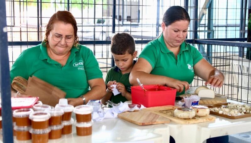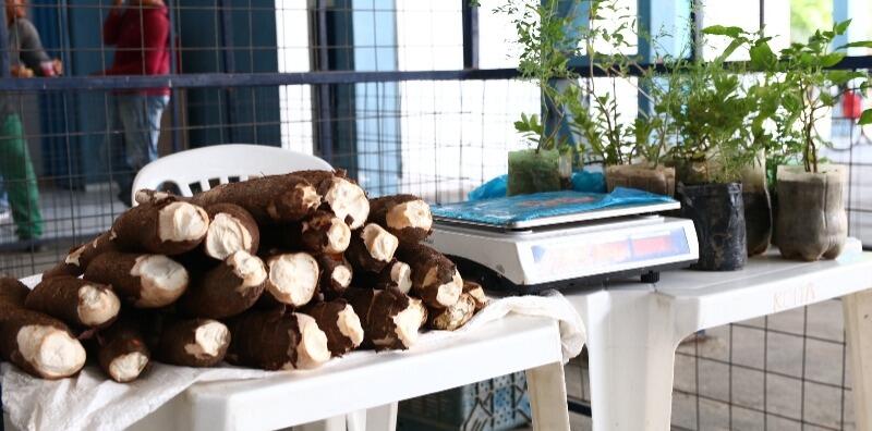Foram comercializados, durante esta manhã, frutas, hortaliças, plantas, biscoitos, doce, queijo do leite da cabra, rapadura, polpa de fruta, castanha, feijão verde, entre outros produtos.