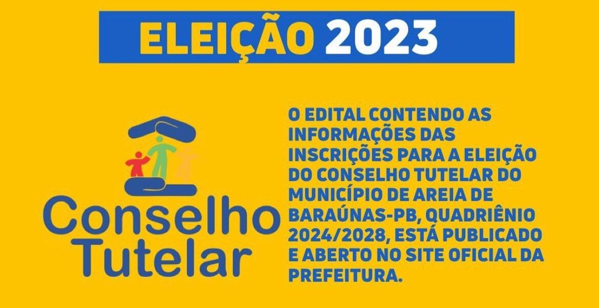 O edital contendo as informações das inscrições para a eleição do Conselho Tutelar do município de AREIA DE BARAÚNAS-PB, quadriênio 2024/2028, está publicado e aberto no site oficial da Prefeitura.