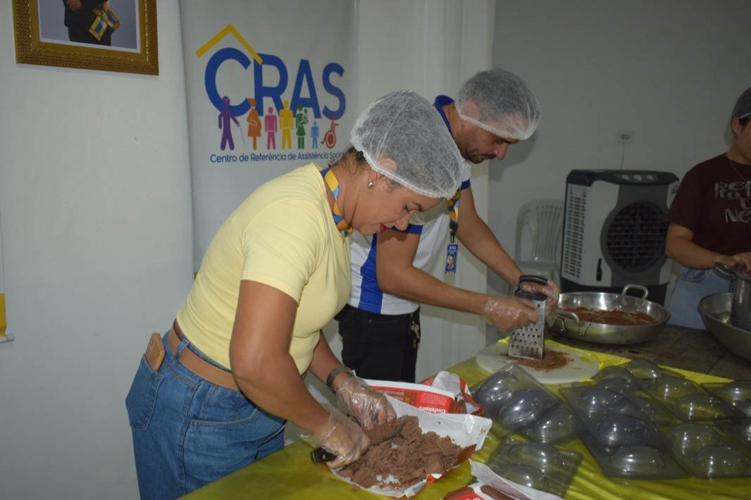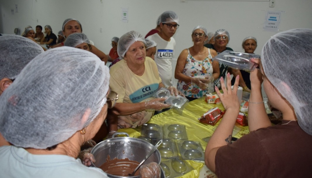 Exclusiva deste período que antecede a Páscoa, a oficina objetiva promover a convivência, o fortalecimento de vínculos e sociais entre crianças, adolescentes, idosos, gestantes e familiares. Para além disso, oportuniza formação profissional para os que desejam enveredar nessa área da doceria.