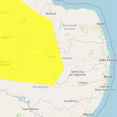 O Instituto Nacional de Meteorologia (Inmet) publicou um alerta amarelo de baixa umidade com Perigo Potencial de incêndios florestais e riscos à saúde. O aviso é válido até às 18h desta segunda-feira (7), em 99 municípios (veja lista abaixo).