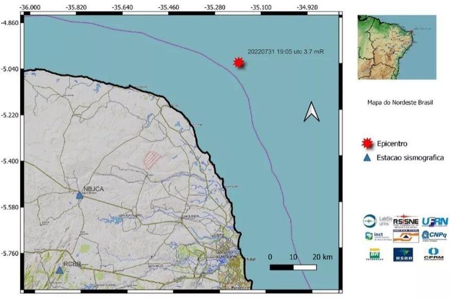 Um tremor de terra de magnitude 3.7 foi registrado pelo Laboratório de Sismologia da UFRN às 16h05 deste domingo (31) no Rio Grande do Norte. O epicentro aconteceu no Oceano Atlântico, mas o tremor foi sentido em todo o litoral norte e em Natal.