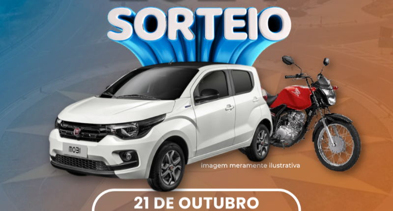 O evento acontecerá na sede da Prefeitura e serão sorteados um carro Fiat Mobi 0 km e uma motocicleta Honda 0 km.