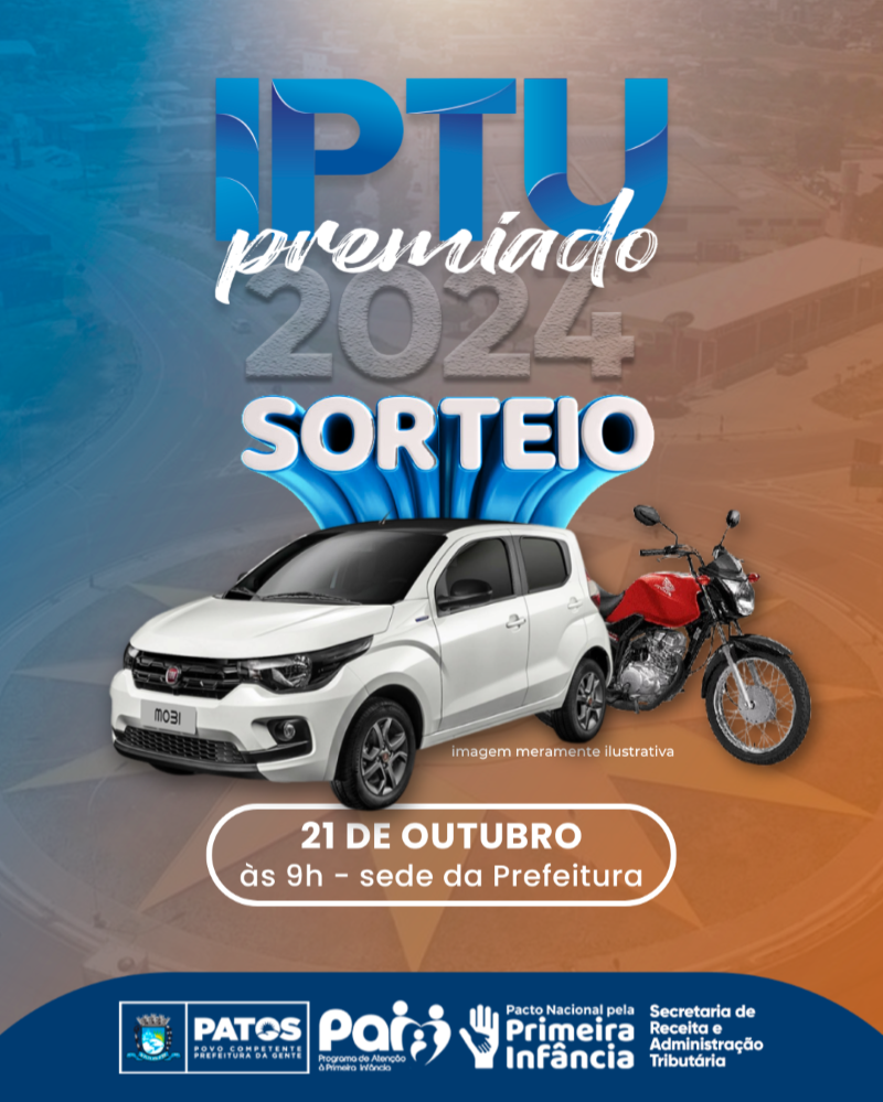 A Prefeitura de Patos realizará na próxima segunda-feira, 21 de outubro, às 9h, o segundo sorteio do IPTU Premiado 2024.