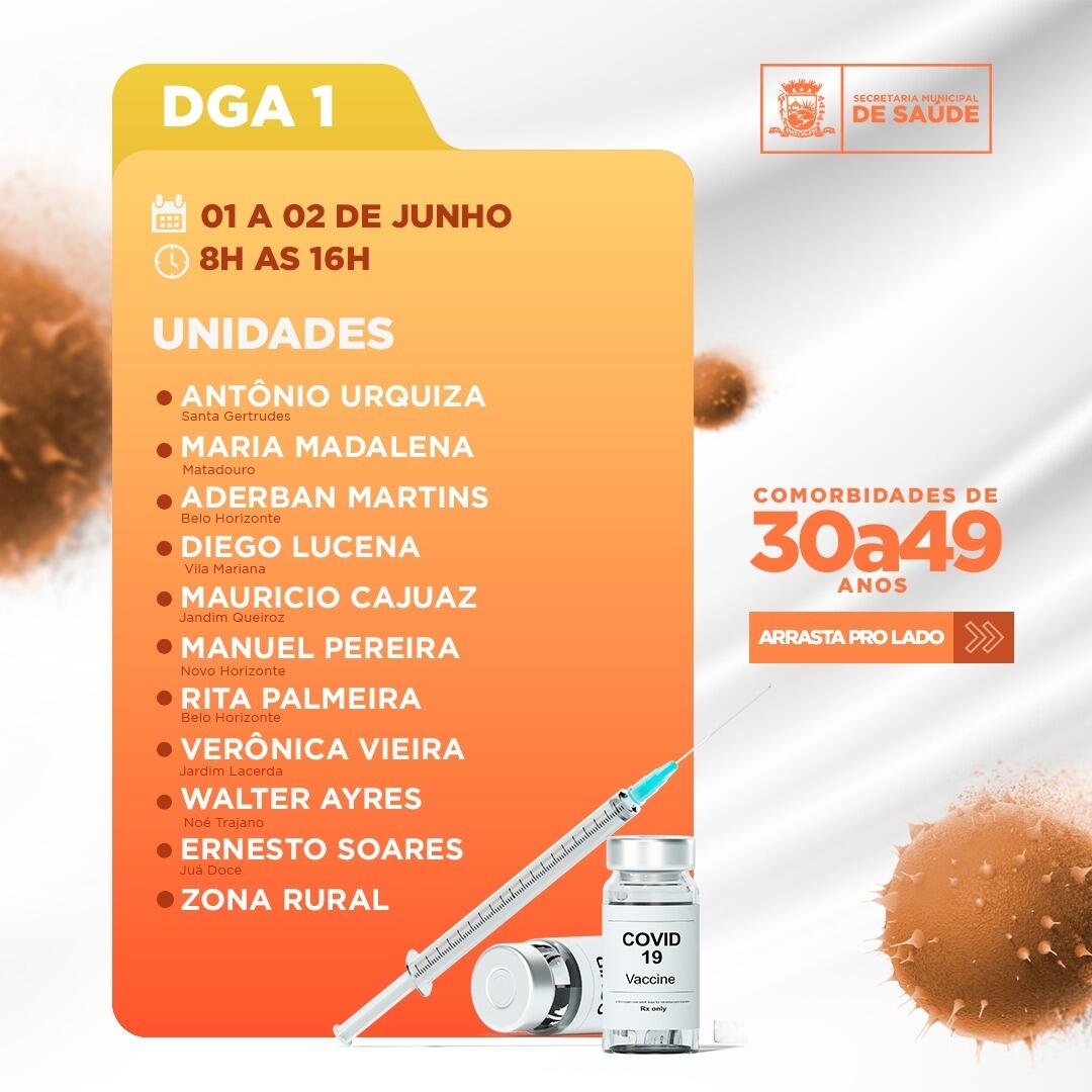 Hoje e amanhã o calendário atende nas unidades do DGA 1, formado pelo distrito de Santa Gertrudes, Belo Horizonte, Novo Horizonte, Noé Trajano, Matadouro, Vila Mariana, Juá Doce, e bairros adjacentes.