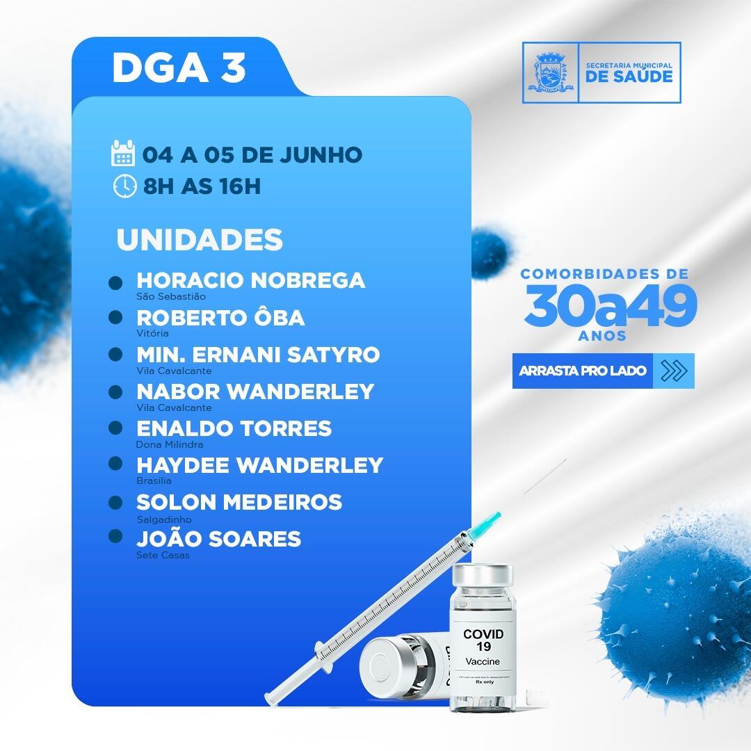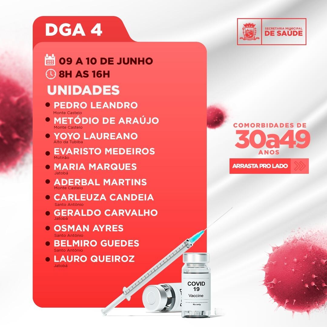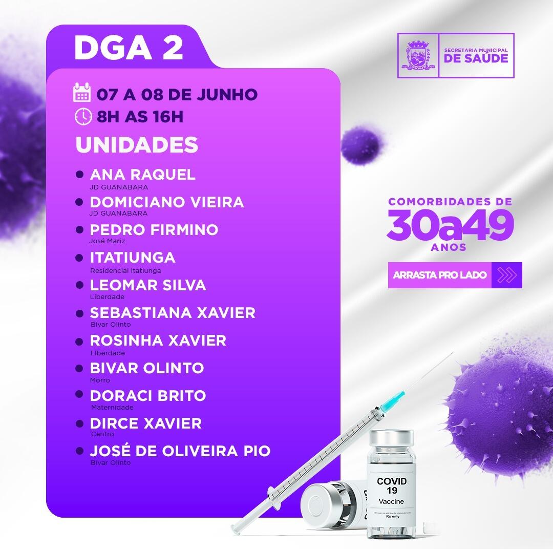 O calendário segue a mesma organização dos anteriores, com a disponibilidade de dois dias de imunização nas unidades de saúde de cada DGA (área da cidade).