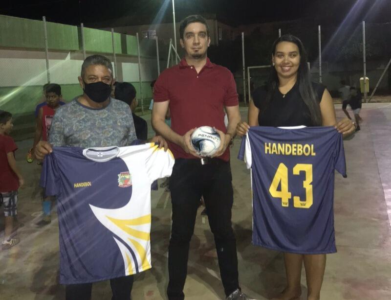 Receberam os uniformes, a equipe de handebol do município e os alunos do professor Vandoilson, que em parceira com a Secretaria promove o esporte no município para crianças com idade a apartir de 5 anos e até 17 anos.