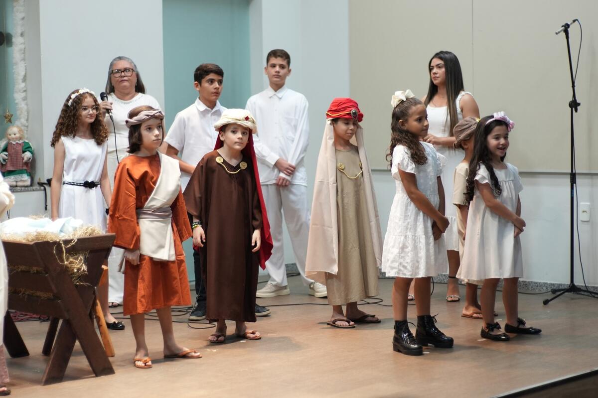 Além dos louvores, o culto foi marcado pela belíssima apresentação do “Auto de Natal- Toquem os Sinos, Jesus Nasceu”, encenado pelas crianças do Ministério de Teatro Força Viva Kids, com produção e autoria de Dilma Prata Conserva.