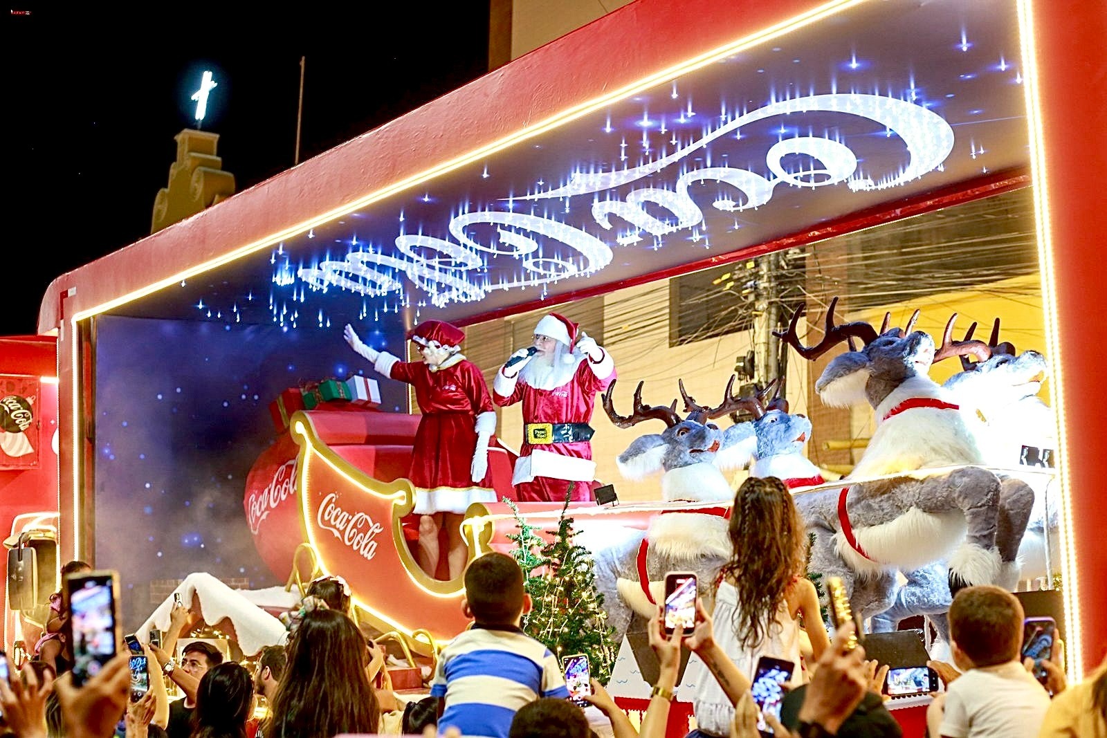 O clima de Natal chegou com muito encanto, iluminando as ruas de Patos nesta segunda-feira (27). A passagem da tradicional Caravana de Natal da Coca-Cola transformou a cidade em um verdadeiro cenário de luz e emoção, reunindo centenas de famílias e amigos que aguardavam nas calçadas e praças para viver esse momento especial.
