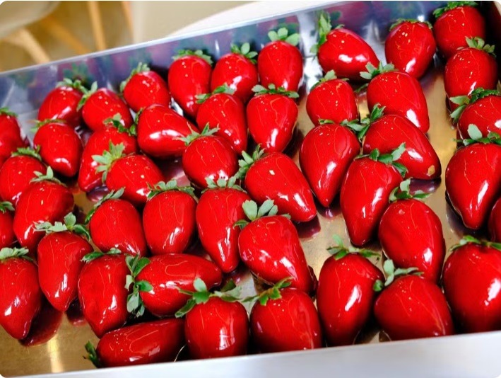 Inspirado na tradicional maçã do amor, o bombom, feito com morango, brigadeiro e uma casquinha crocante, caiu no gosto dos consumidores e já provoca filas em confeitarias de Vila Velha e da Serra, na Grande Vitória.
