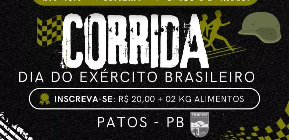 Em alusão ao Dia do Exército Brasileiro, celebrado em 19 de abril, o Tiro de Guerra 07-002, sediado em Patos-PB, está promovendo uma Corrida de Rua beneficente com o objetivo de integrar instituições, incentivar a prática esportiva e promover uma ação social voltada à arrecadação de alimentos para famílias em situação de vulnerabilidade.
