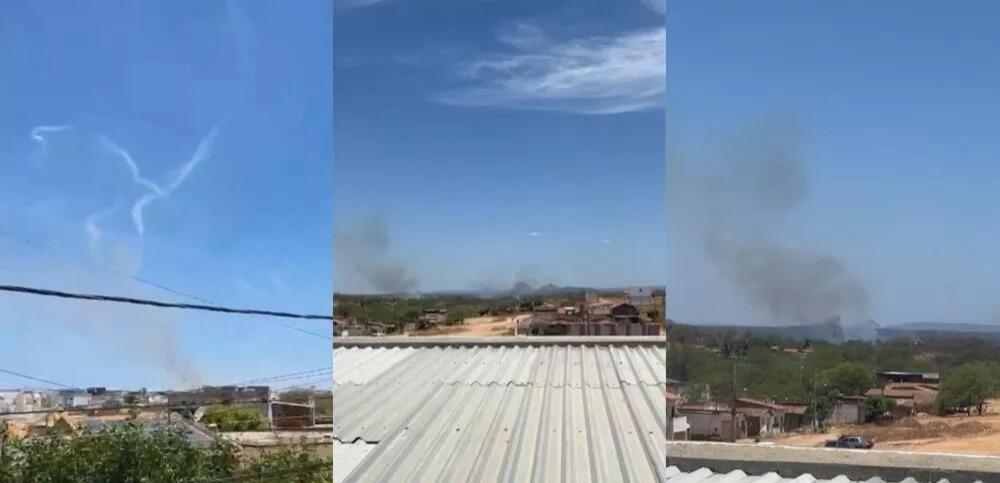 Durante a manhã de hoje (14), os caças militares realizavam mais um dia de treinamentos, visíveis no céu de várias localidades, quando, por volta das 11h, um forte estrondo foi ouvido pela população patoense. De forma correlacionada, um foco de fumaça em vegetação seca também era visível nas proximidades da BR-230.