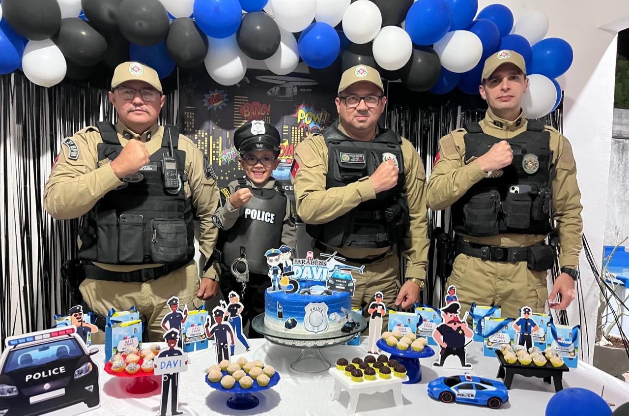 Apaixonado pela corporação desde muito cedo, Davi pediu ao pai, Pedro Filho, que sua festa tivesse o tema policial e, para completar a alegria, o pedido foi atendido com a presença especial de uma guarnição da 1ª Companhia do 3º BPM.