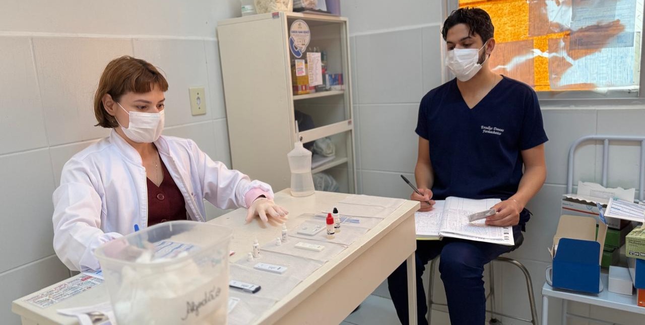 Durante a ação, três enfermeiras — Edite, Juliana e Thayne — realizaram os procedimentos de inserção, com apoio de uma residente de farmácia, que realizou testes rápidos, além de toda a equipe da UBS Evaristo Guedes, responsável pela triagem e organização dos atendimentos.