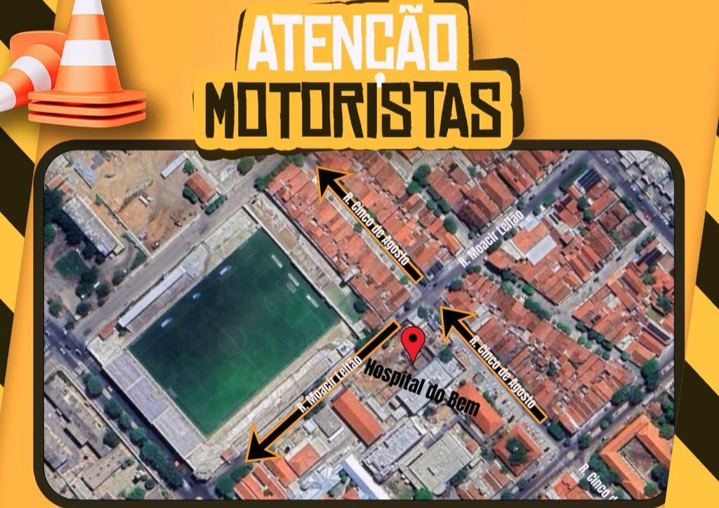 A Rua Moacir Leitão passa a operar em sentido único no trecho que vai do início da Rua 5 de Agosto até a rotatória do Estádio Municipal. A circulação permitida agora é leste–oeste.