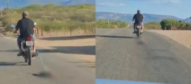 Um homem foi flagrado na tarde desta quinta-feira (12) puxando um cachorro por uma corda, em uma motocicleta, ao trafegar por uma rodovia do município de Paulista, na região de Pombal, Sertão paraibano.