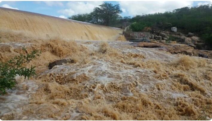 Esses dois açudes também estavam sangrando no início de 2024. Ambos estão entre os reservatórios que receberam águas da transposição do Rio São Francisco.