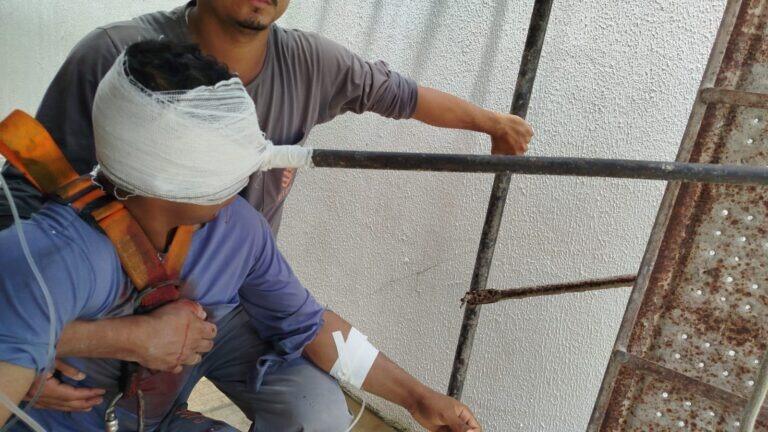 Segundo o Corpo de Bombeiros, o homem trabalhava como receptor do material. A barra estava descendo em uma corda e acabou se desprendendo, atingindo o olho da vítima.