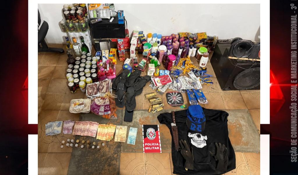 PM prende dupla e recupera grande quantidade de produtos furtados de mercadinho em Teixeira