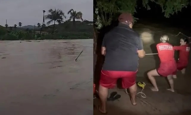 Bombeiros resgatam casal ilhado após aumento do nível do Rio da Cruz, em Mãe d’Água