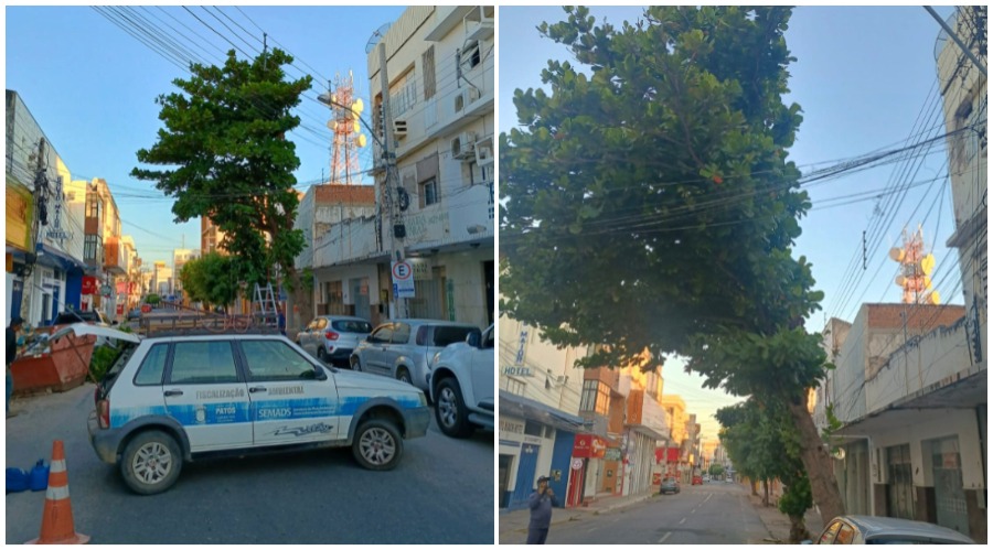 Árvore que causava risco iminente no Centro de Patos é retirada pela Semads