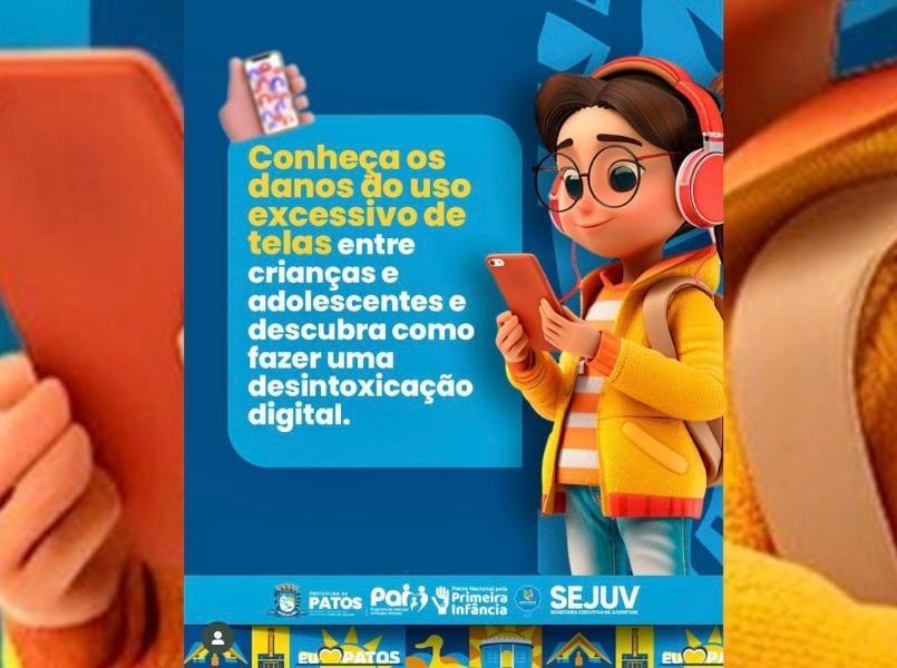 A Prefeitura de Patos, por meio da Secretaria Executiva de Juventude, inicia uma campanha de conscientização sobre os danos causados pelo uso excessivo de telas entre crianças e adolescentes. A iniciativa será desenvolvida por meio das redes sociais, pit stops em locais estratégicos, visitas a escolas, universidades e atividades em praças públicas.