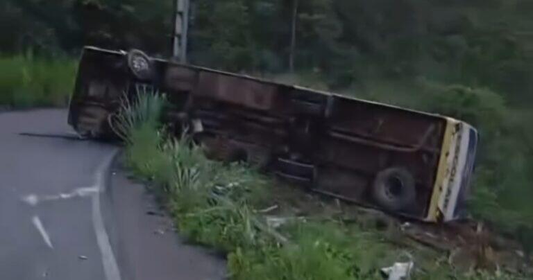 [VÍDEO] Motociclista flagra tombamento de ônibus que matou dois estudantes
