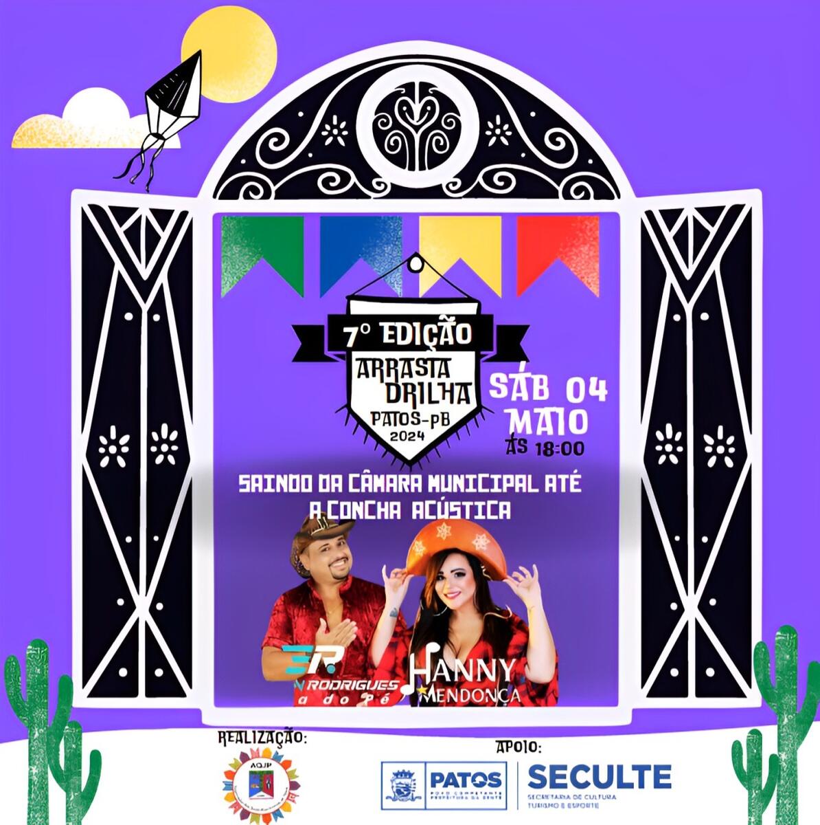 As festividades juninas estão bem próximas, e com isso, iniciam as programações do período na cidade de Patos. No sábado, dia 04 de maio, a Associação de Quadrilhas Juninas de Patos (AQJP) abre, oficialmente, o calendário de apresentações das quadrilhas juninas na cidade com a 7ª edição do Arrasta Drilha.