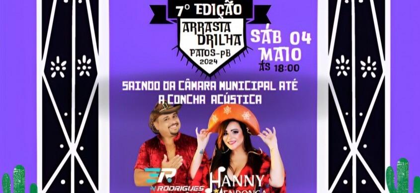 O evento, que já é tradição em Patos e promete trazer muitos dançarinos para a rua. O Arrasta terá concentração às 18h30, em frente à Câmara Municipal de Patos, com previsão de início às 20h, seguindo por toda a rua Horácio Nóbrega em direção a Cocha Acústica Nilson Batista ( Praça do CEPA) .