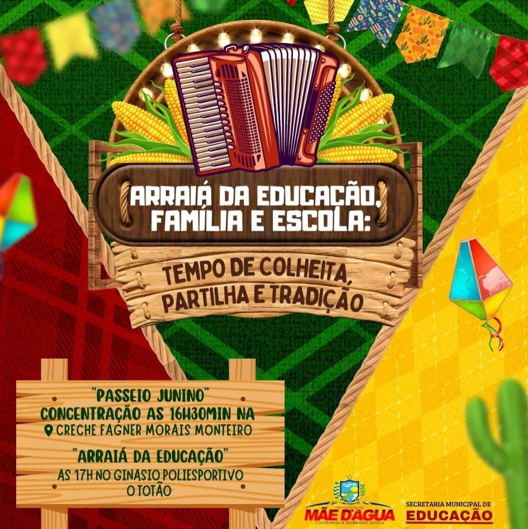 Mantendo a tradição e compartilhando com alunos, professores e todas as famílias este momento de festa, que representa o período dos Festejos Juninos para nossa região, a Prefeitura de Mãe d’Água, por meio da Secretaria de Educação, realiza de 11 a 14 de junho, o São João da Educação 2024.