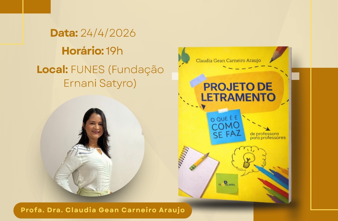 A professora de língua portuguesa Dra. Claudia Gean Carneiro Araujo lança, nesta sexta-feira, 24 de abril, às 19h, na FUNES (Fundação Ernani Satyro), em Patos, o livro “Projeto de letramento: o que é e como se faz”. A obra é dedicada a professores e demais interessados em compreender e vivenciar práticas de letramento em sala de aula e em outras esferas sociais.