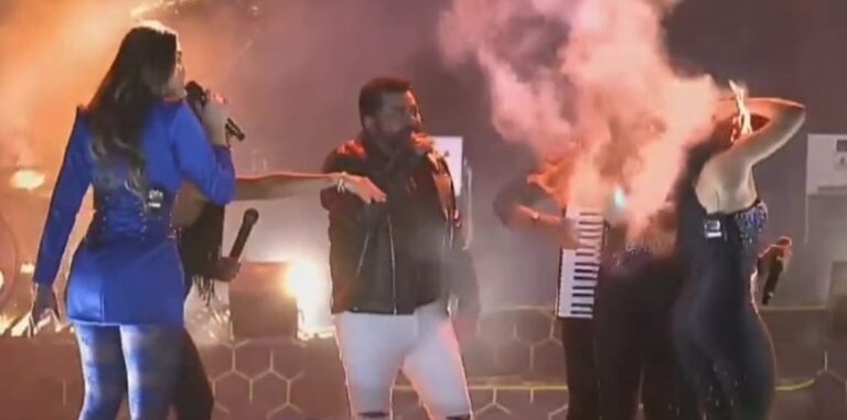 [VÍDEO] Fogo atinge cabelo de backing vocal da Limão com Mel