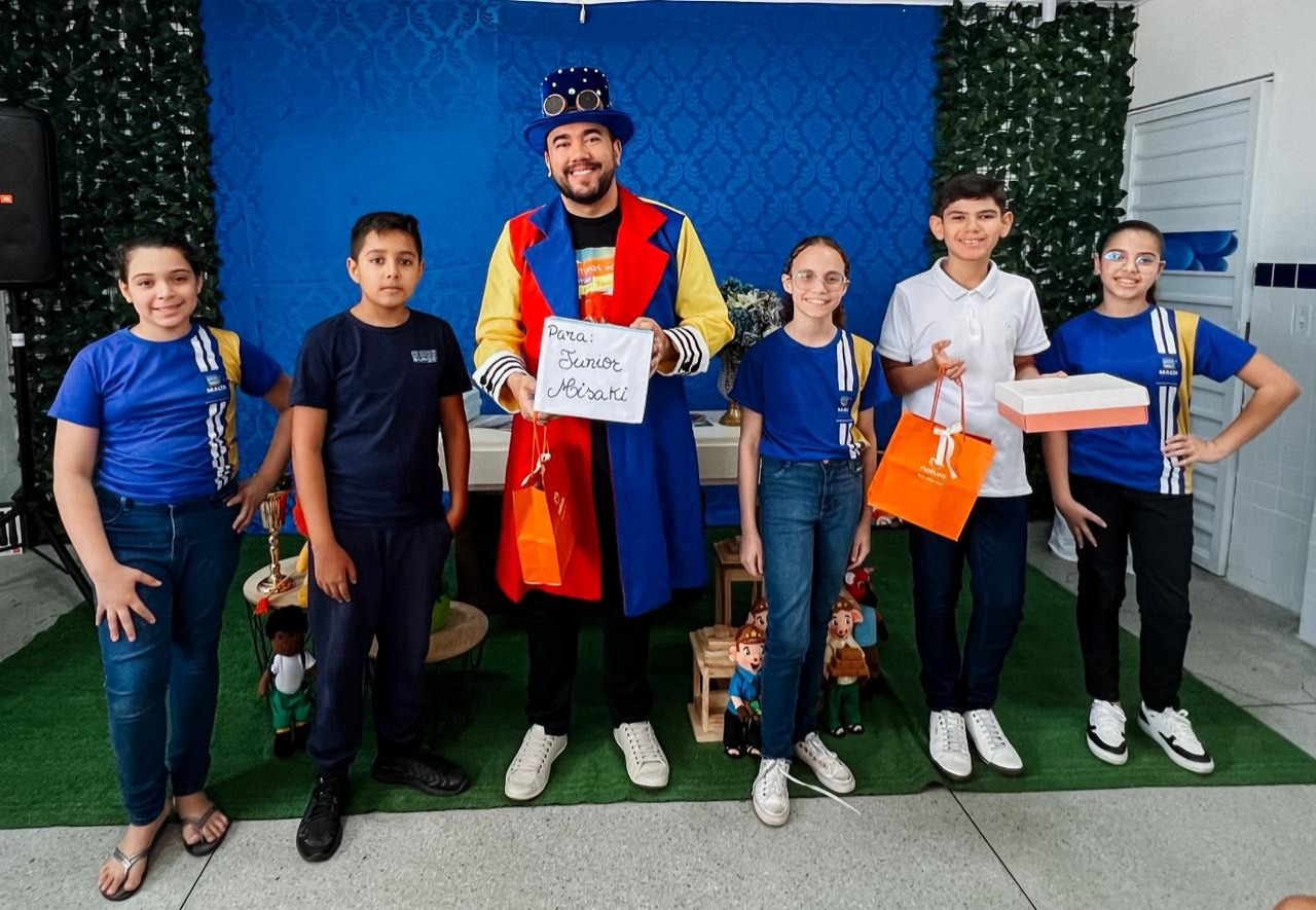 O escritor Júnior Misaki encantou os estudantes com suas histórias cheias de imaginação e mensagens sobre sonhos e valores. Com sua linguagem acessível e criativa, ele conseguiu aproximar os alunos do universo literário, despertando o interesse pela escrita e pela leitura como forma de expressão.