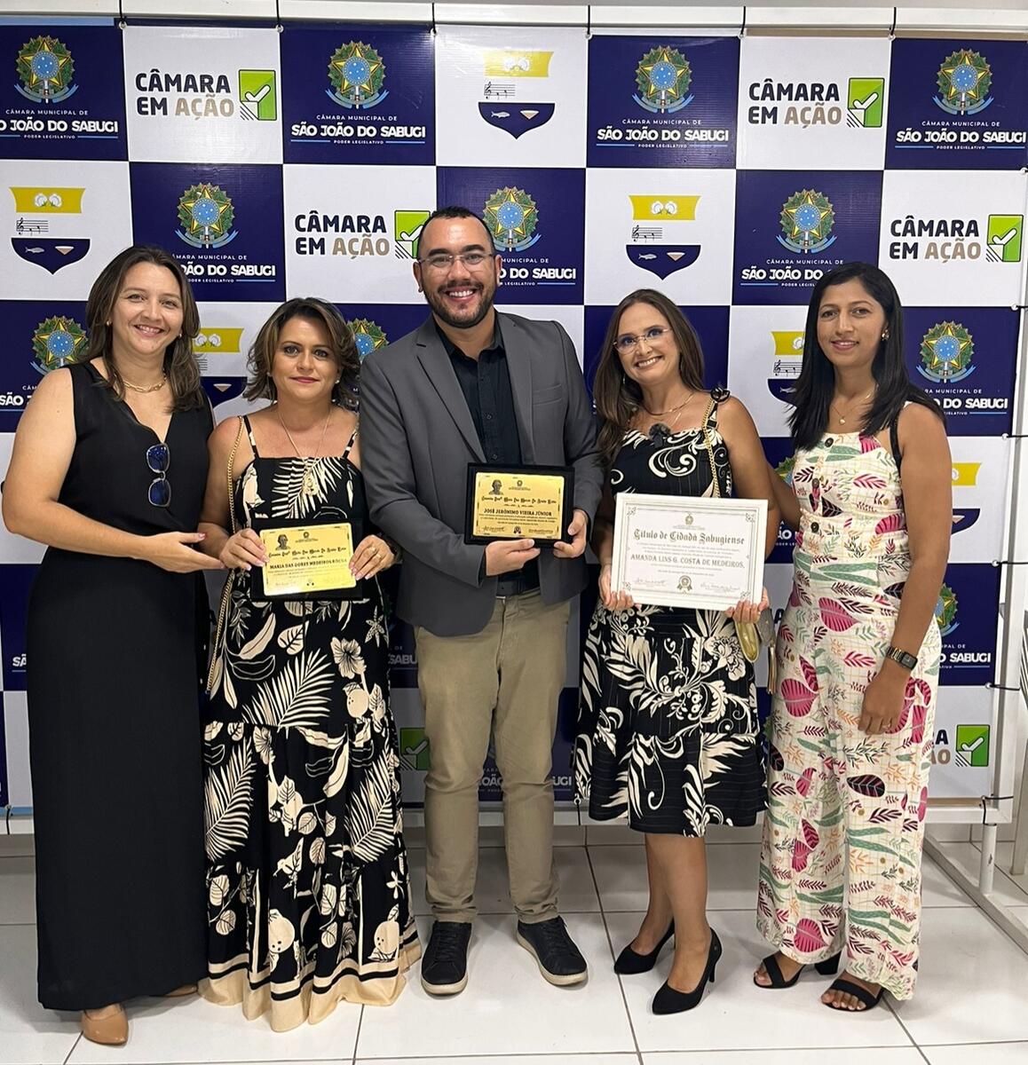 A comenda foi entregue pela vereadora Maria Aparecida Morais de Araújo, que homenageou o professor com a honraria que leva o nome de uma das mais célebres educadoras que o município já teve, a professor Maria das Mercês, onde anualmente pessoas destaques no município recebem a homenagem do legislativo com este mérito.