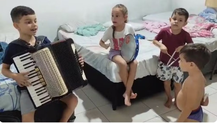 Joab Dantas, pai das crianças e sanfoneiro, conta que a música esteve presente na vida dele desde quando tinha a idade dos filhos. Sua infância, vivida na cidade de Picuí, no Seridó da Paraíba, foi repleta de confraternizações de família regadas por música e pelo ritmo do forró.