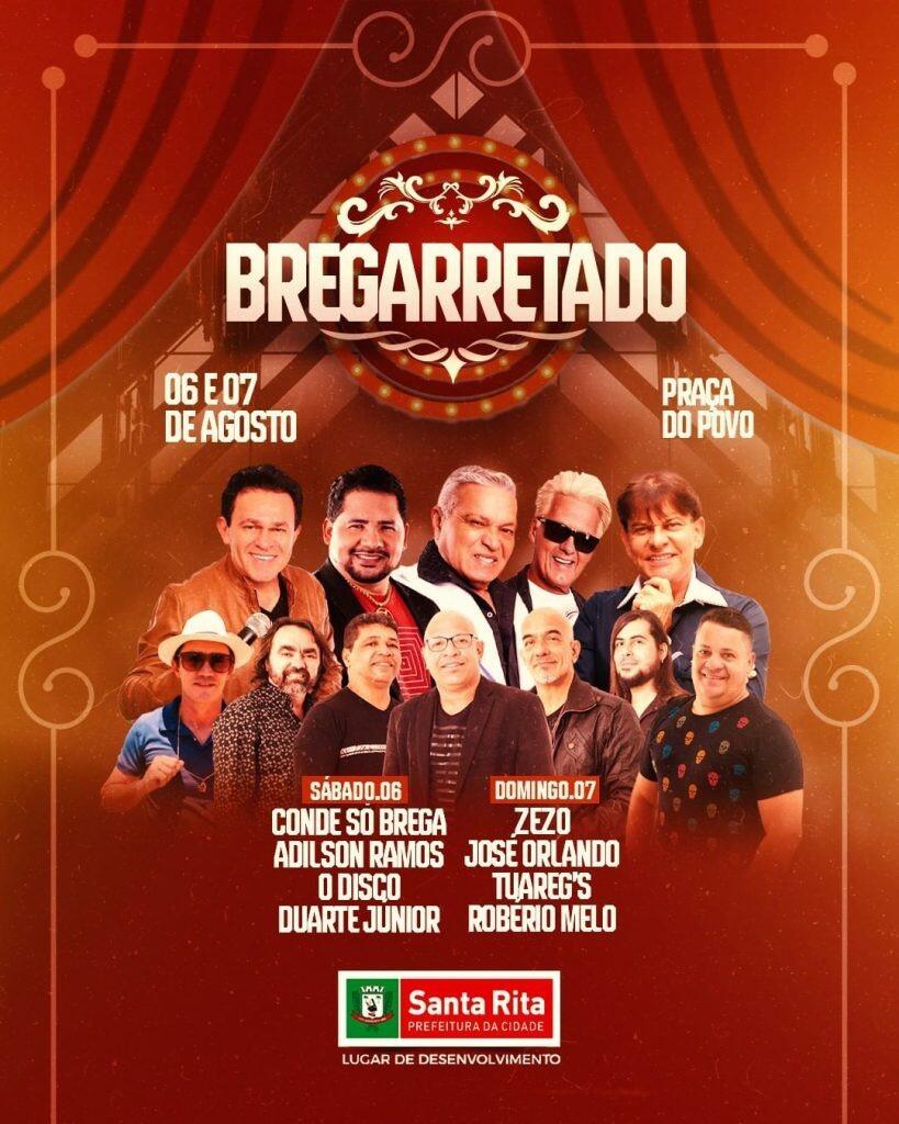 A Prefeitura de Santa Rita, através da Secretaria de Cultura, Desporto, Turismo e Lazer (SECDTUR), promove neste sábado (6) e domingo (7), o Bregarretado. O evento pretende reunir milhares de pessoas na Praça do Povo, a partir das 19h.
