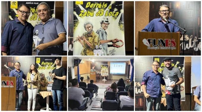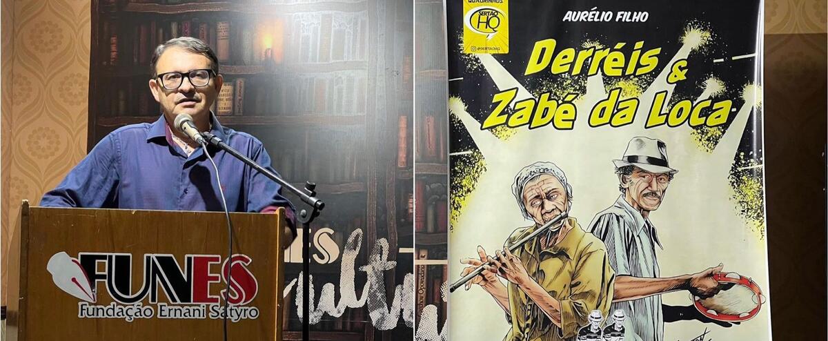 O quadrinista e ilustrador Aurélio Filho, natural de Patos-PB, recebeu várias representações da arte e da cultura patoense na noite de sexta-feira, 7 de junho de 2023, na solenidade de lançamento de sua mais nova história em quadrinhos: Derréis e Zabé da Loca. O evento aconteceu no auditório da Fundação Ernani Sátiro (FUNES).