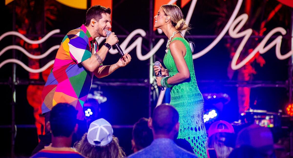 PARTICIPAÇÕES – A gravação desta quarta-feira contou com 30 canções na setlist. Entre elas, sucessos que marcaram a história da banda, como “Verdadeiro amor”. Os convidados especiais também embarcaram nessa viagem musical. Ao lado de Ohara, a paraibana Lucy Alves subiu no palco para interpretar um medley com “Apaixonada”, “Sonhar” e “Adoro”, músicas que ela cresceu ouvindo. “Foi muito mágico fazer essa troca no palco. A Magníficos é sinônimo de tradição, de qualidade. E foi massa participar desse momento único”, falou.