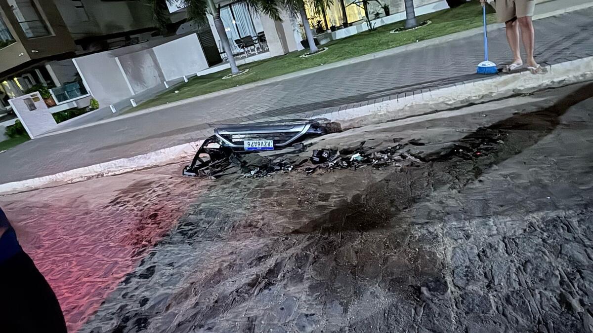 Outras peças do carro ficaram espalhadas no meio da rua. O veículo é do médico e ex-deputado estadual Érico Djan, mas não se sabe se era ele quem dirigia o carro no momento do acidente.