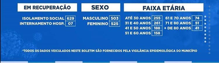 A expressiva maioria está entre a faixa etária até 40 anos com 516 casos, 50,19% do total. No entanto é justamente a faixa com menor número de óbitos, 3 apenas, ou seja, 0,29%.