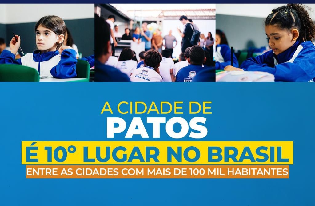 A Educação municipal de Patos alcançou a 10ª posição no ranking dos municípios brasileiros com mais de 100 mil habitantes no Índice de Crianças Alfabetizadas (ICA), divulgado pelo Ministério da Educação (MEC). No Brasil, são 319 cidades com essa população. O resultado enaltece o avanço educacional da cidade e a consolidação de políticas públicas voltadas à alfabetização na idade certa.