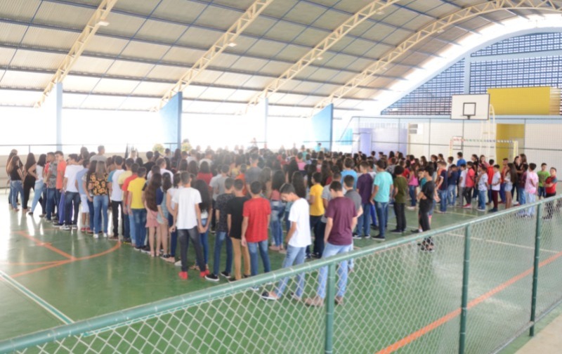 A solenidade simbólica aconteceu na quadra da escola municipal Monsenhor Manoel Vieira, no bairro do Monte Castelo e contou com a presença da secretária de educação, Socorro Chaves, além de profissionais do setor pedagógico da secretaria de educação, professores, direção e alunos.