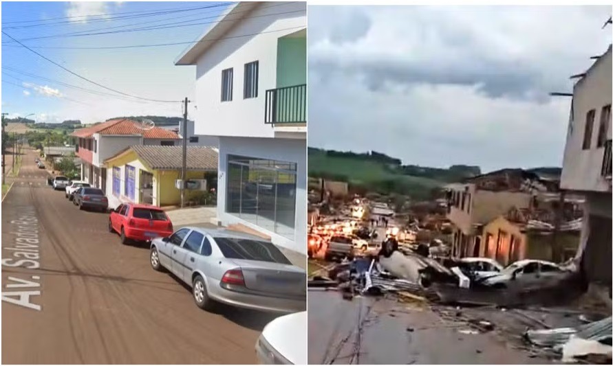 - Moradores relataram que o tornado chegou com temporal, vento forte e granizo. A cidade tem cerca de 14 mil habitantes e fica a 400 km de Curitiba.