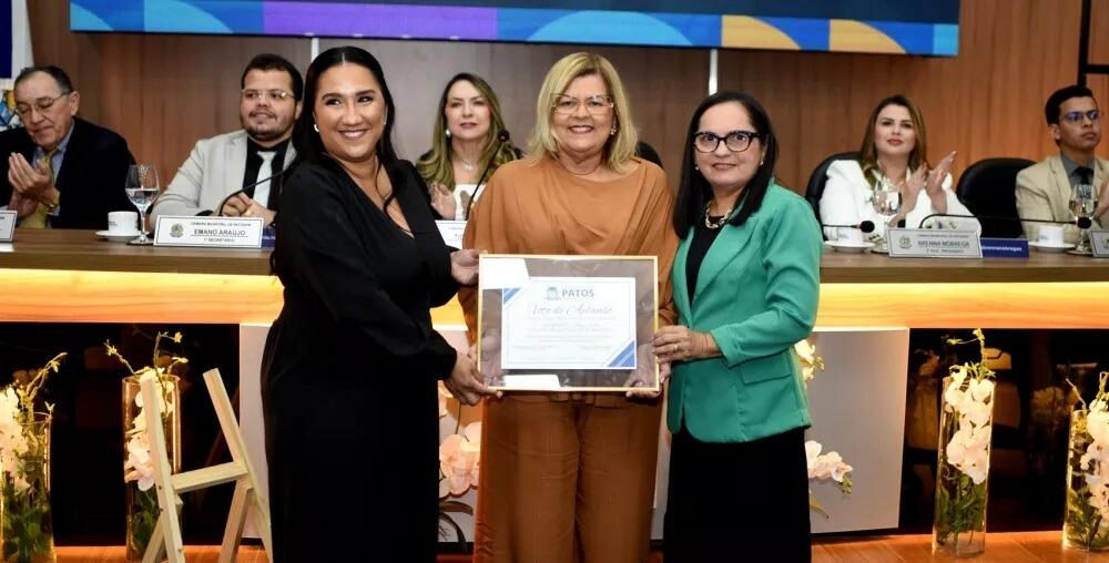 A parlamentar também enalteceu o papel da Câmara Municipal de Patos como a "Casa do Povo", destacando o orgulho da Casa Legislativa em reconhecer a importância da UNIFIP para a formação acadêmica e profissional de jovens e adultos da cidade e de toda a região.