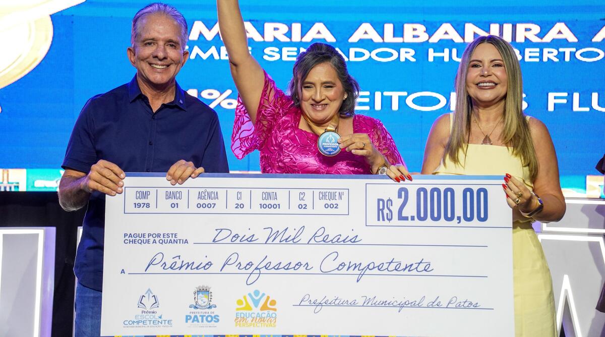 A Prefeitura de Patos, por meio da Secretaria Municipal de Educação, realizou na noite desta quinta-feira (24) a cerimônia de entrega do Prêmio Escola Competente 2025, uma iniciativa que reconhece o desempenho de escolas e professores da Rede Municipal de Ensino com base nos resultados do Sistema de Avaliação da Educação Básica da Paraíba (SIAVE-PB).