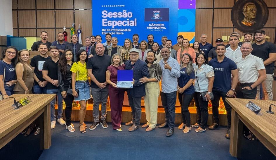 A Câmara Municipal de Patos realizou na noite desta sexta-feira, dia 12 de setembro, às 19h, uma Sessão Especial em alusão ao Dia do Profissional de Educação Física. A solenidade foi protocolada pela vereadora Lúcia de Chica Motta (Republicanos), através do Requerimento Nº 1.416/2025, aprovado por unanimidade pelos parlamentares da Casa Juvenal Lúcio de Sousa.